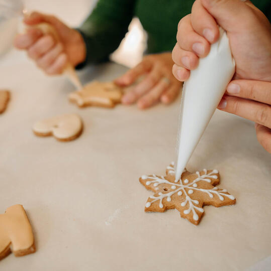 J'anime une activité de 1h à 2h à votre domicile, où les enfants réalisent et décorent des sablés avec du glaçage royal.